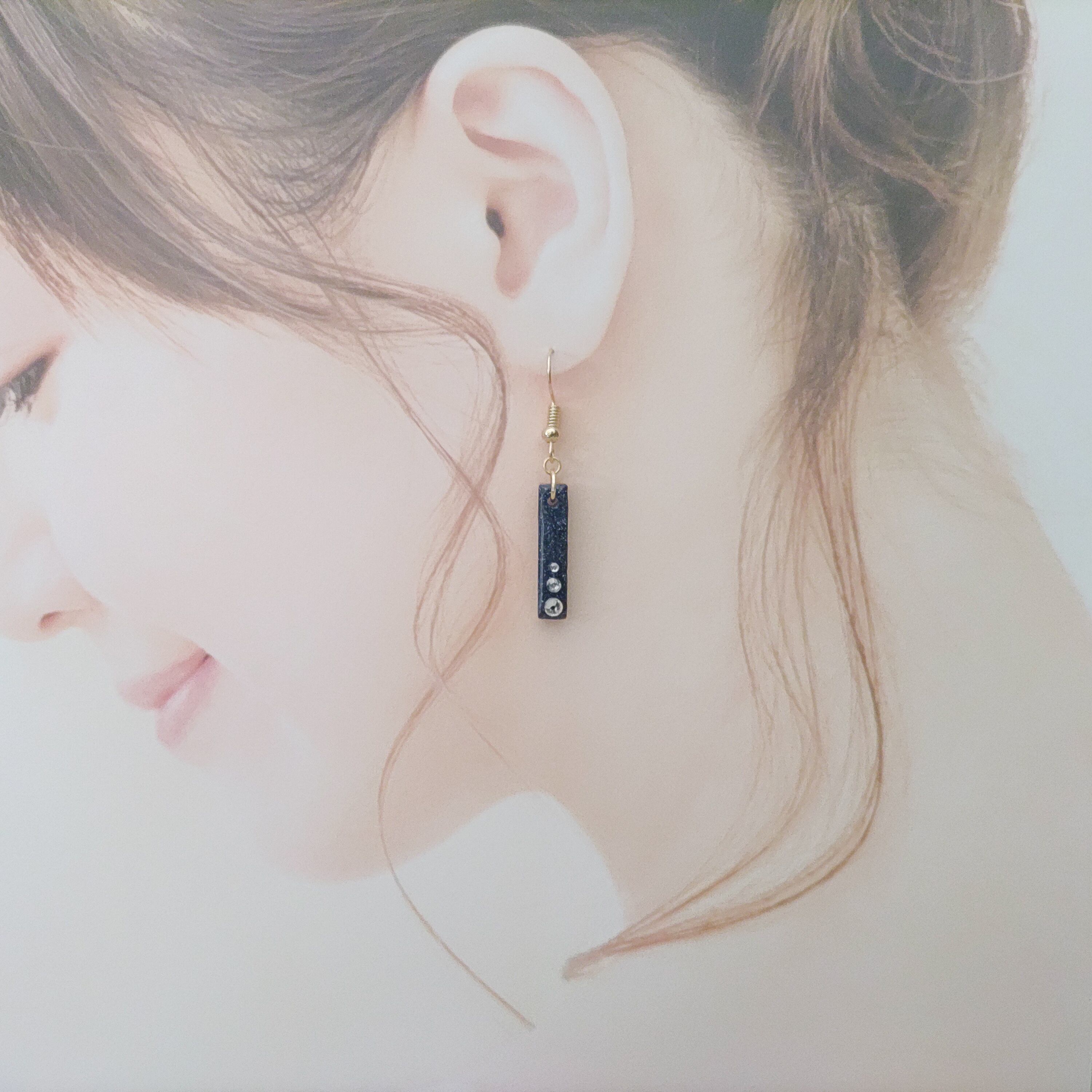金属アレルギーでも安心 ピアス サージカルステンレス イヤリング 濃紺 ラメ 星屑の輝き 長方形 フックピアス 揺れるピアス 大人可愛い 上品 洗練された 高見え 普段使い ギフトにも最適 プレゼント