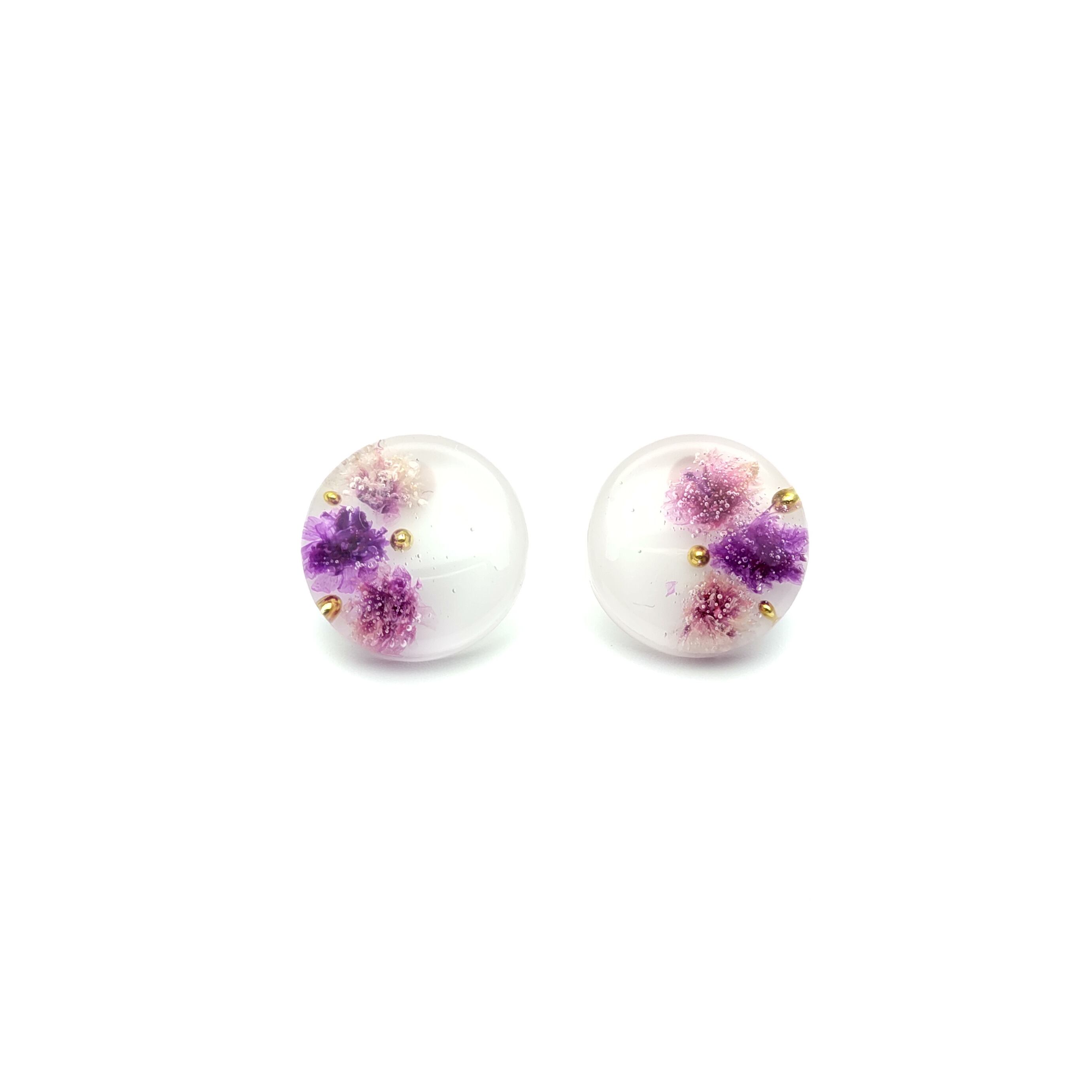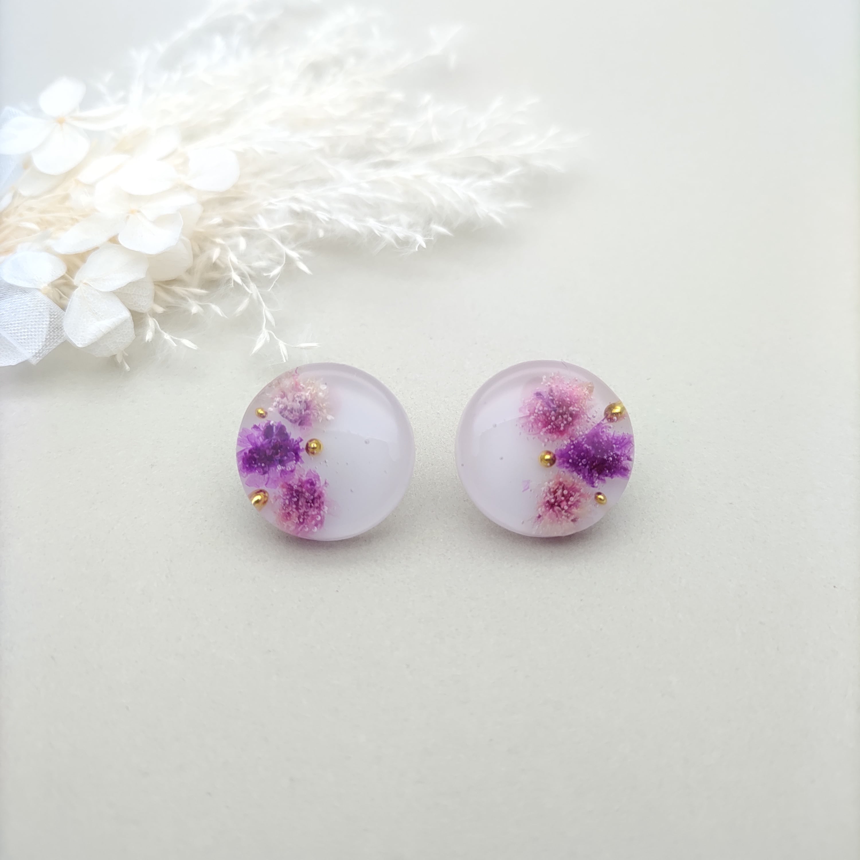 金属アレルギーでも安心 ピアス サージカルステンレス イヤリング パープル ドライフラワー フラワーモチーフ 高見え ハンドメイド 上品ラグジュアリー 大人可愛い 透明感 普段使い ギフト プレゼント