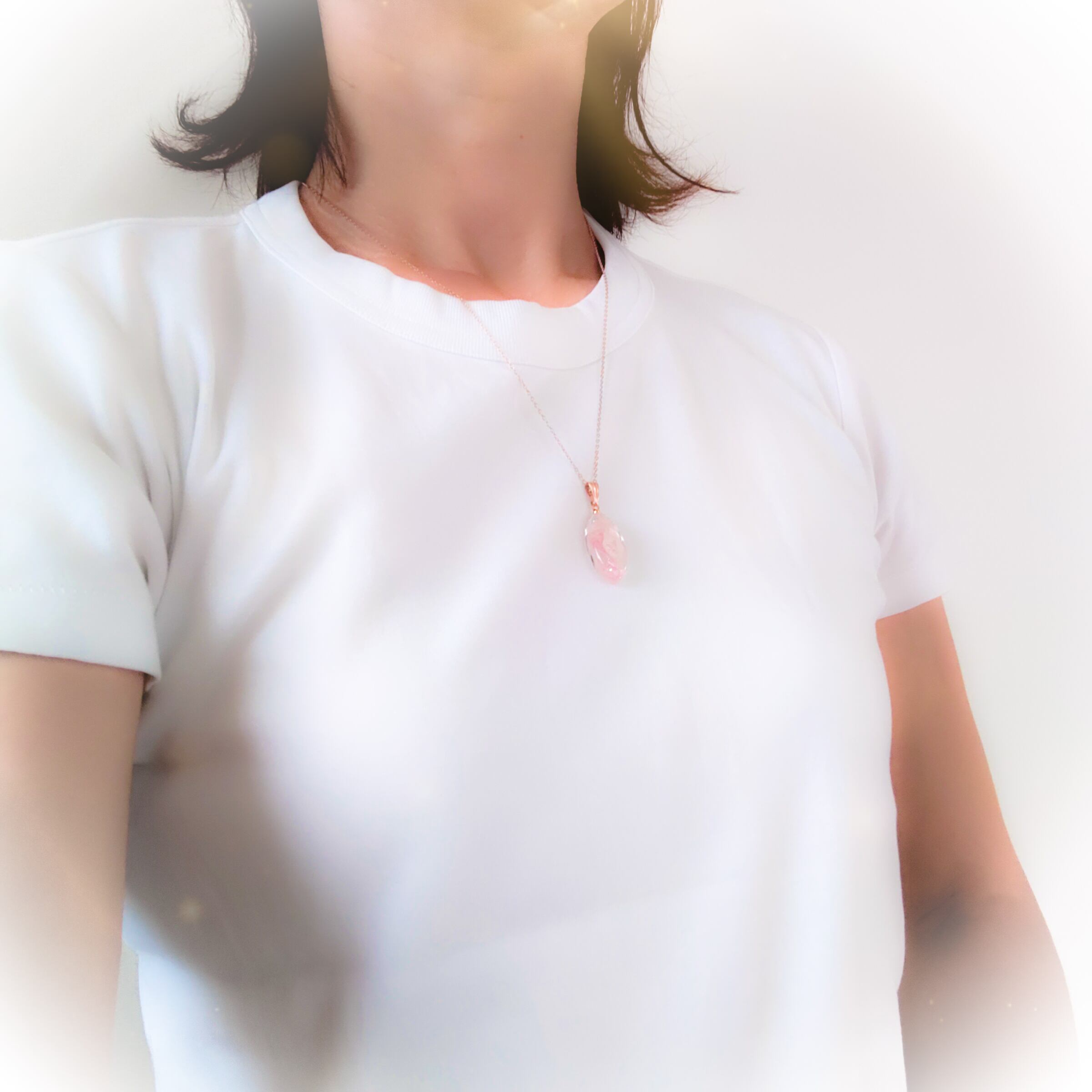 静かな透明感と柔らかな彩りが、あなたの胸元を美しく照らし出すネックレス。