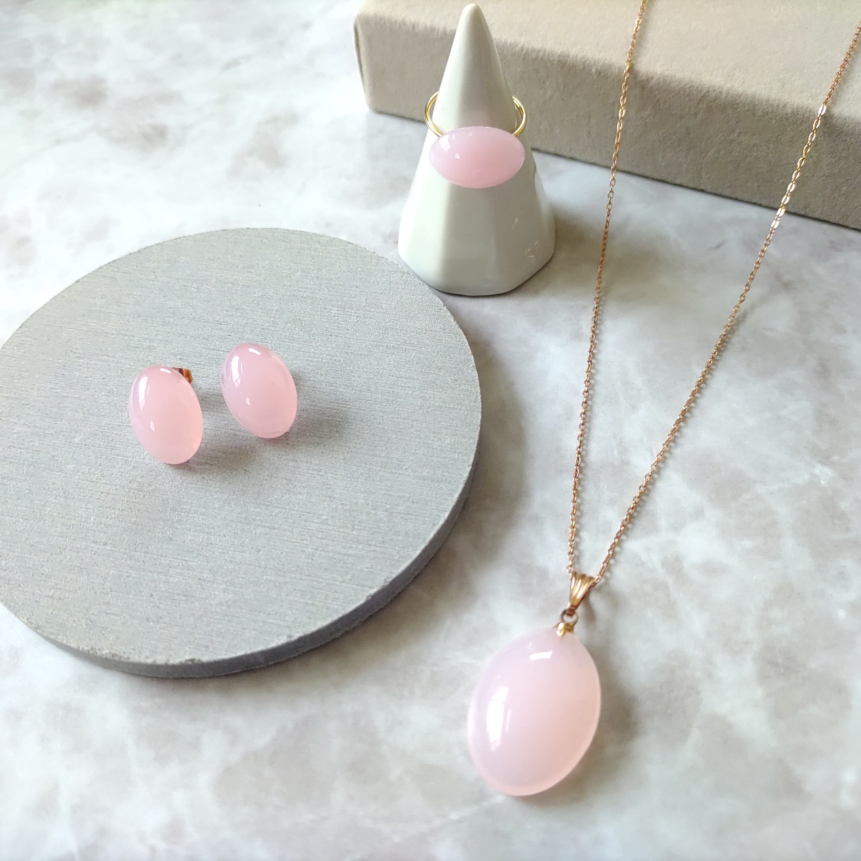 ピンクリングをお探しの方や、愛を象徴するローズクオーツの雰囲気を纏いたい方にぜひおすすめしたい、上質なレジンアクセサリーです。